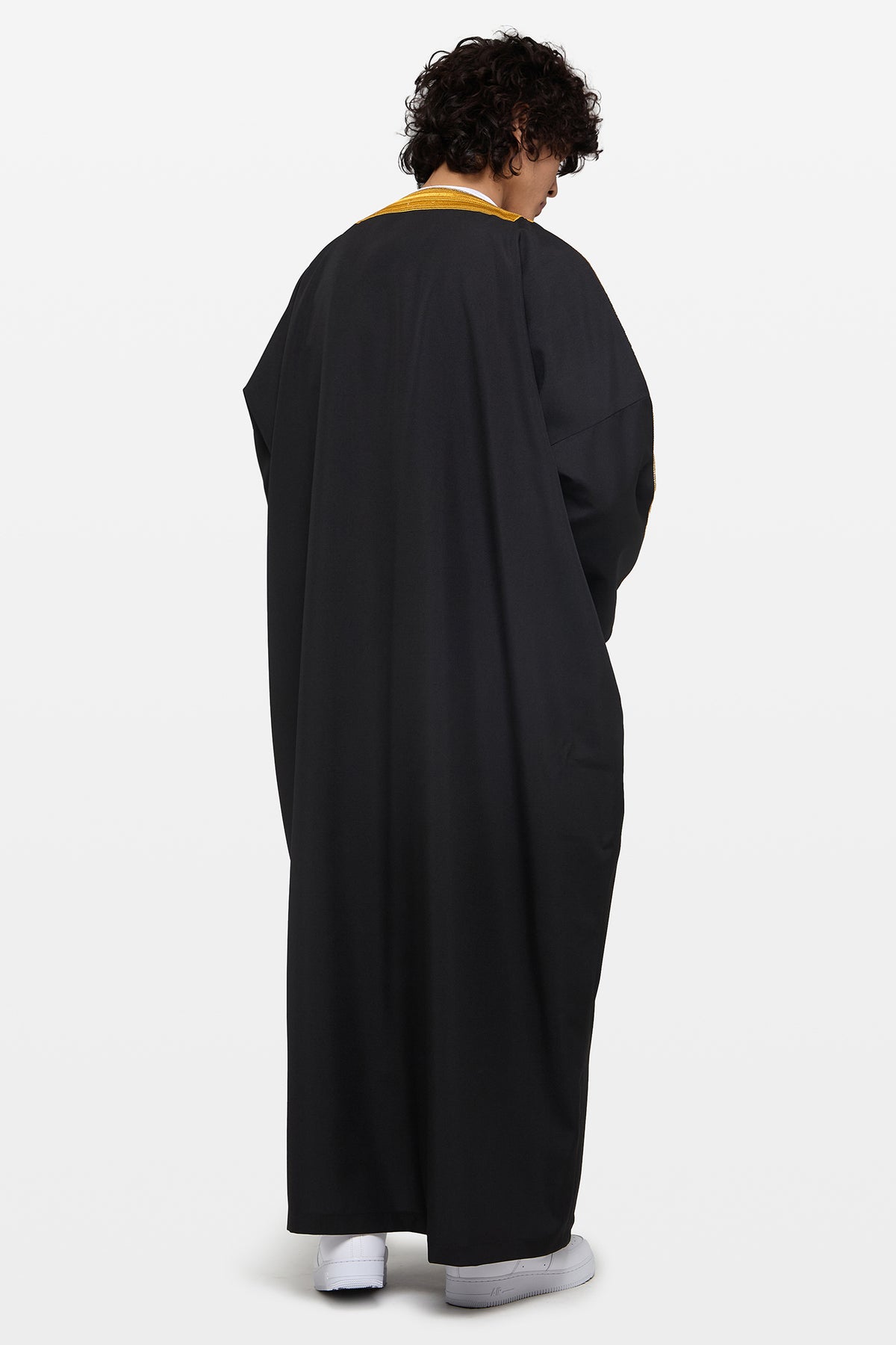 The dense weave gives the garment a sense of permanence, balancing tradition with refinement. Finished with precise detailing and a restrained silhouette, it reflects a considered approach to Gulf craftsmanship—designed for longevity rather than occasion alone.